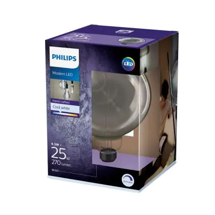 Philips Classic LED Globe E27 200mm Filament Smoke 6.5W 200lm - 818 Blanc Très Chaud | Dimmable - Équivalent 20W