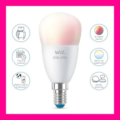 | Nom du fabricant | WiZ Kogellamp - Slimme LED-Verlichting - Gekleurd en Wit Licht - E14 - 40W - Mat - Wi-Fi | |
