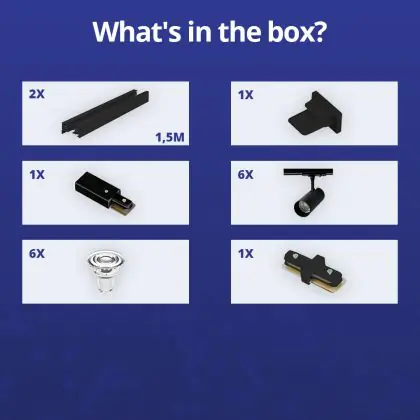 | Fabrikantnaam | Complete Straight 3-meter 1-Phase Track Set Black incl. 6x Spot fixture + GU10 2700K 3W Dim – 2x 1.5 | |
