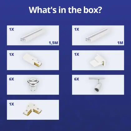 | Fabrikantnaam | Complete L shaped 1-Phase Track Set White incl. 6x Spot fixture + GU10 2700K 3W Dim - 1 x 1,5 meter | |