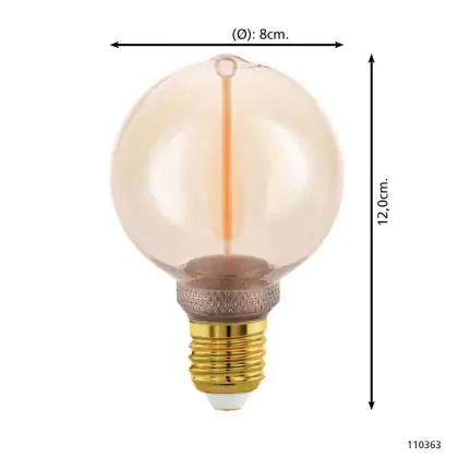 Eglo LED Globe E27 Filament Amber 2W 100lm - 818 Zeer Warm Wit | Dimbaar - Vervangt 15W