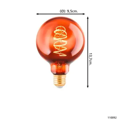 Eglo LED Globe E27 Filament Amber 4W 30lm - 820 Zeer Warm Wit | Dimbaar - Vervangt 15W