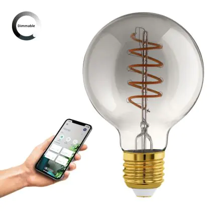 Eglo Connect.Z Smart LED Globe E27 Filament Smokey 4W 150lm - 820 Blanc Très Chaud | Dimmable - Équivalent 15W