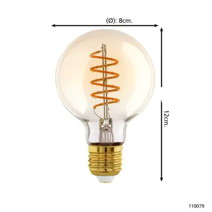 Eglo LED Globe E27 Filament Ambre 4W 245lm - 820 Blanc Très Chaud | Dimmable - Équivalent 25W