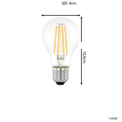 Eglo LED Poire E27 Filament Claire 7.3W 806lm - 830 Blanc Chaud | Équivalent 60W