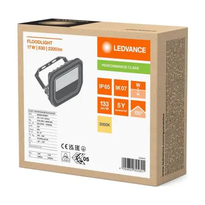 Ledvance Projecteur LED Aluminium Blanc 17W 2200lm 100D - 830 Blanc Chaud | IP66 - Symétrique