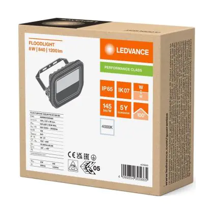Ledvance Projecteur LED Aluminium Noir 8W 1200lm 100D - 840 Blanc Froid | IP66 - Symétrique