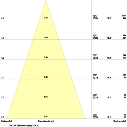 | Angle de Diffusion (degrés) | 36 | |
