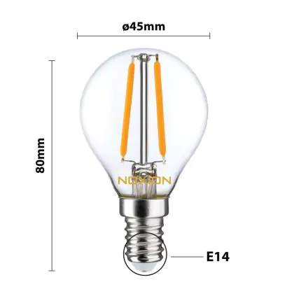 | Nom du fabricant | Noxion Lucent Filament LED Lustre P45 E14 220-240V 2.5W 250LM CRI80 2700K NON-DIM (25W eqv.) | |