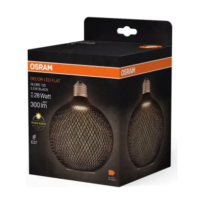 Osram Decor Plat Lamp In Métal Boîtier Vide LED E27 Globe Dépolie Noir 3.5W 300lm - 827 Blanc Très Chaud | Équivalent 25W