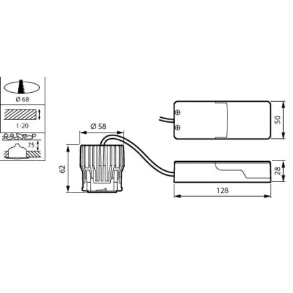 | Place nécessaire (mm) | 68 | |